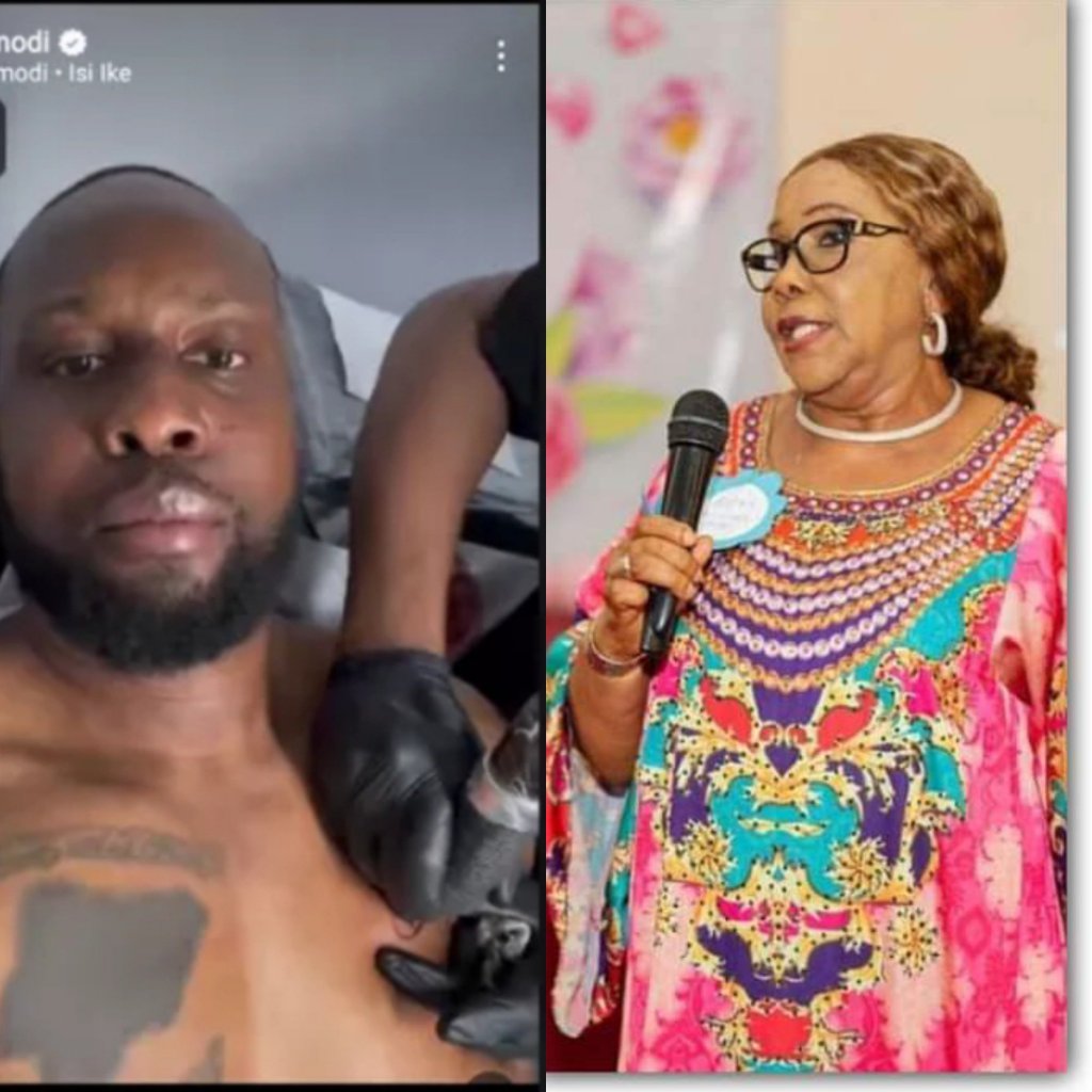 Popular figure and a musician Ray Emodi, has gone to his media platforms stick to discuss a lovely clip of himself as he print his mother’s name on his chest.